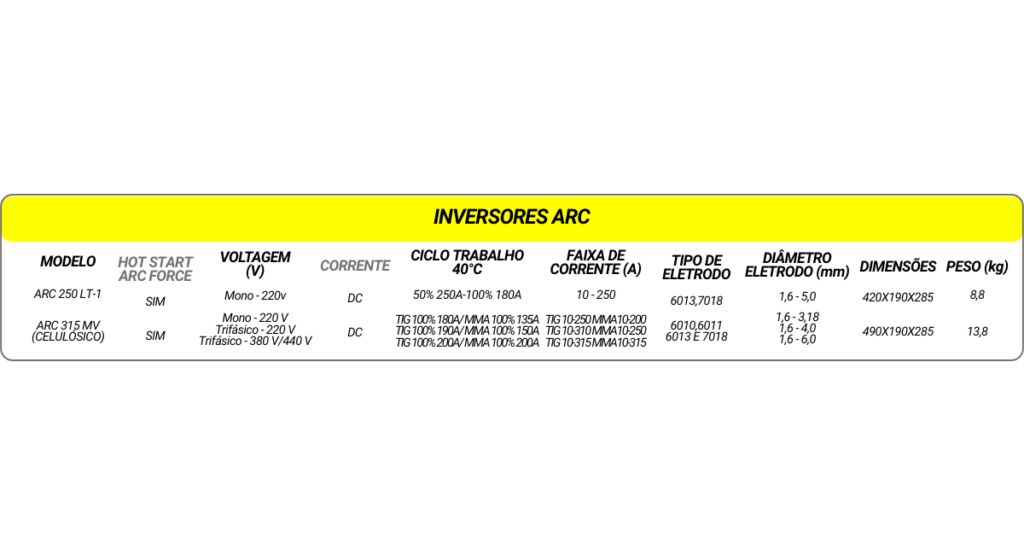 Inversores para Eletrodos Revestidos e TIG (LIFT TIG) (Recorte Adicional)