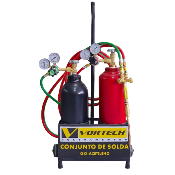 Equipamento de Solda portátil, ideal para uso em setores de manutenção industrial e refrigeração, utilizado para gases Oxigênio e Acetileno.