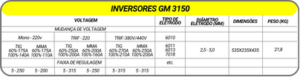 Proteções: sobre/subtensão, térmica e sobrecorrente.