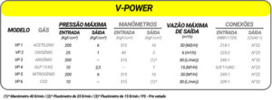 1 Regulador de Pressão Linha V-POWER (configurado para o gás escolhido).